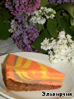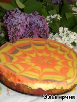 Самое интересное... На середину бисквита выливаем 4 ст.л. начинки одного цвета, 4 ст.л. второго цвета и 4 ст.л. третьего цвета - и так, пока не закончится масса.