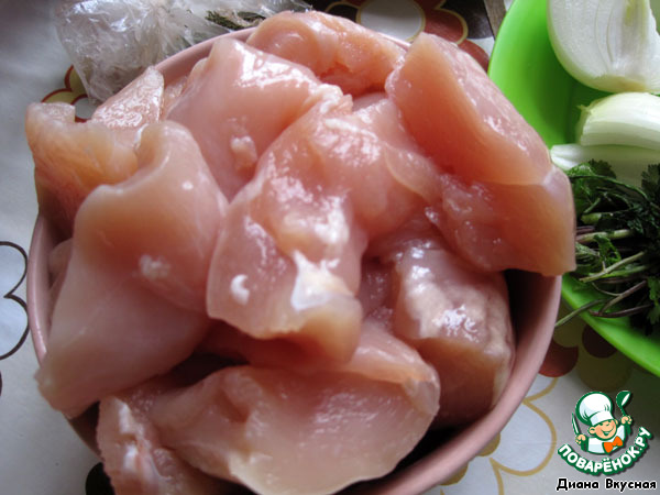 Нарезаем куриное филе.