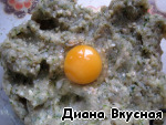 Готовый фарш начиняем яйцом, солью и перцем и хорошеько перемешиваем.