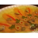 8. Выложить в форму все ингредиенты, посолить и залить желатином.