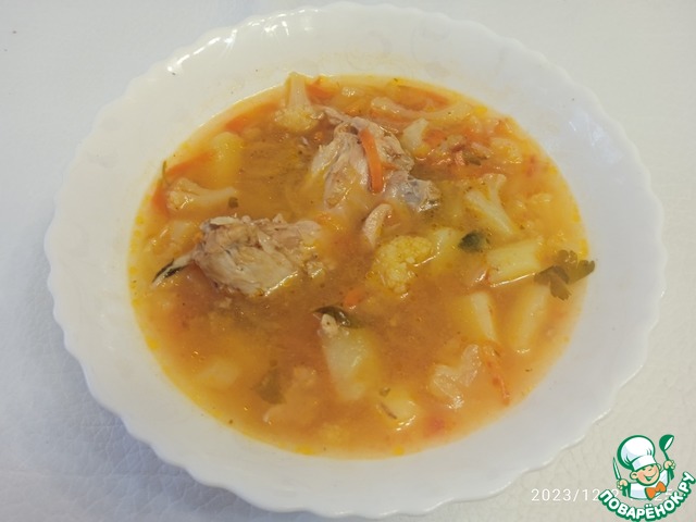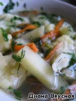 Минут через 5-10 засыпать нарезаной зеленью и чесноком, посолить, поперчить и выключить.
