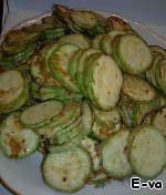 Пока мясо тушится, быстро обжариваем кабачки в яйце. Делается это просто: яйцо взбиваем вилкой. Чтобы желток и белок стали одной массой, обмакиваем кружочек кабачка и обжариваем на большом огне. Буквально по паре минут с каждой стороны.