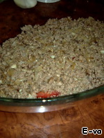 Посыпаем сыром. Дома сыра было мало, поэтому натерла сколько лежало в холодильнике.