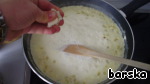 • В соус добавить пармезан, дать ему немного загустеть.