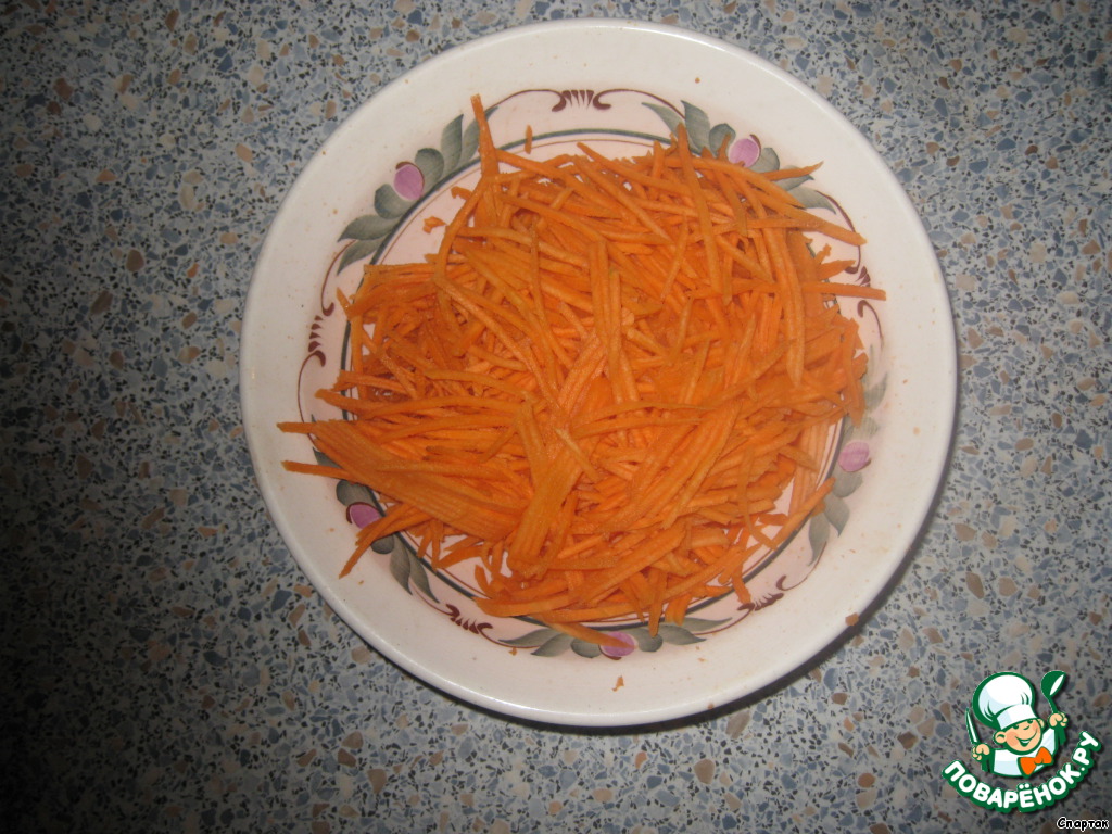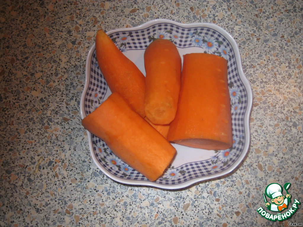 Берем морковь. После того как почистим, я обычно кладу её в воду, чтобы стала сочней.