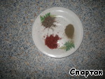 Берем чеснок, черный перец, красный жгучий и приправу. Приправу стараюсь брать не магазинную, а на базаре смесь приправ.