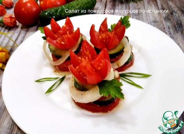 Салат из помидоров и огурцов по-испански