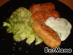 Очень простой и довольно быстрый вариант ужина. Сочные, с хрустящей корочкой рыбные колбаски, диетические макароны из кабачка и соус, натуральный и низкокалорийный!