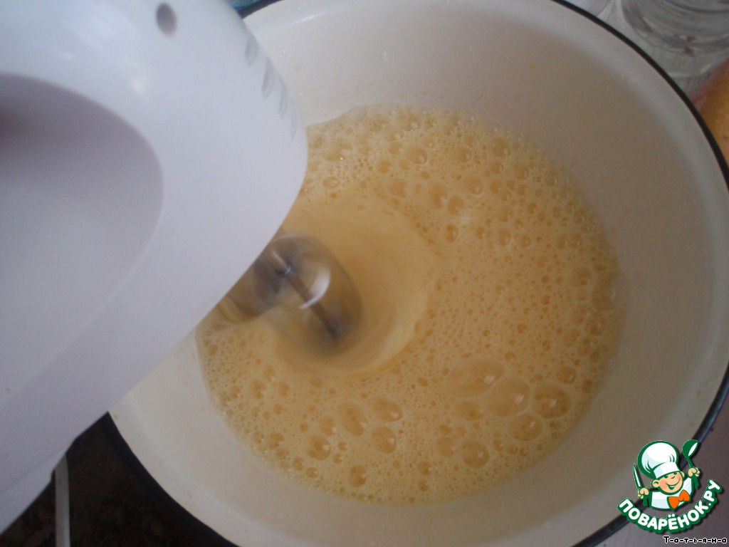 Делаем бисквит. Взбиваем 3 яйца (обычно я беру 4), пока они не увеличатся в объеме.