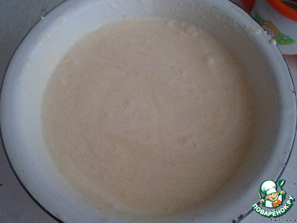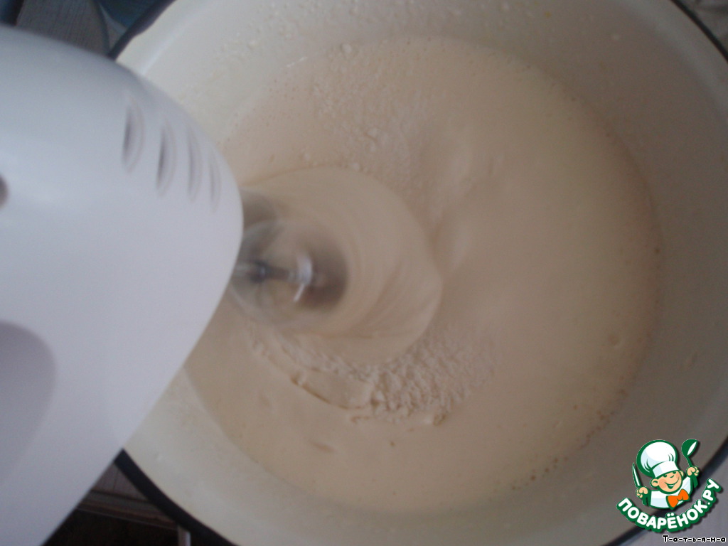 Гасим 0,5 ч.л. соды, перемешиваем. Добавляем 1 ст муки