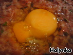 У меня фарш немного жидковат, потому добавила две ложки манки.
