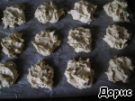 Выложить чайной ложкой на пергамент и отправить в духовку, разогретую до 200 градусов, на 10 минут.