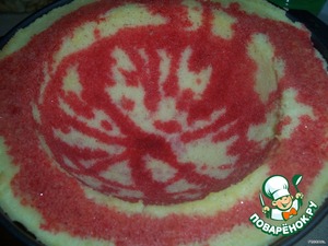 Итак: печём бисквит, выливаем его в форму и накрываем другой, чтобы, когда испечётся, в середине была выемка, чтобы залить крем.