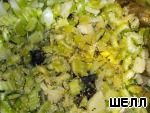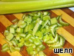 • Добавляем в кастрюлю тонко порезанный сельдерей, лук и семена кунжута.
