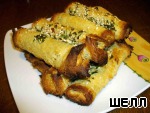 • Выкладываем палочки на противень и смазываем сверху оставшейся масляной смесью.