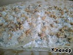 Положить второй лаваш, смазать майонезом вместе с зеленью и распределить всю горбушку.