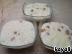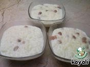 • 1. Из молока, риса и изюма сварить кашу, добавить сахар по вкусу, сразу разложить по формам.