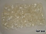 Перед падачей форму перевернуть, снять пленку и нарезать мусс примерно 1 см.