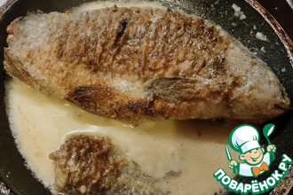 Как форель побелеет (минут через 10), открыть крышку и дать рыбке немного подрумяниться. Можно смазать форель сметаной до запекания, а можно обрызгать лимонным соком.