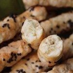 Из маленького кусочка сделать палочку, присыпать обильно кунжутом и уложить в форму, застеленную бумагой.