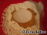 Смешать муку с солью, растительным маслом, взбитым белком.