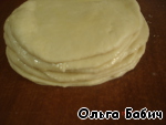 Каждый шарик раскатать, промазать обильно маслом и сложить друг на друга. -