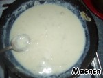 Потихоньку вливаем теплое молоко, перемешиваем.