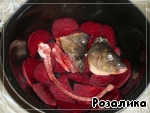 Выложить в казан или кастрюлю свеклу, морковь, лук..