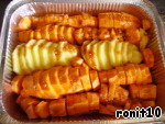 Поместить овощи таким образом в противень.