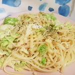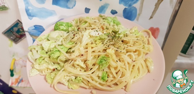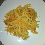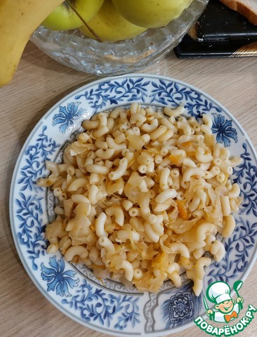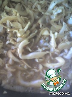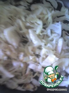 Капусту (у меня была отварная) нарезать соломкой, обжарить.