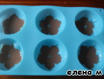 В силиконовые формы залить шоколадное желе, дать остыть, убрать в холодильник. Как только начнёт застывать ("схватится"), вынуть из холодильника
