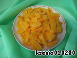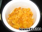 Тем временем 1 апельсин очистить от пленочек и порезать на небольшие кубики.