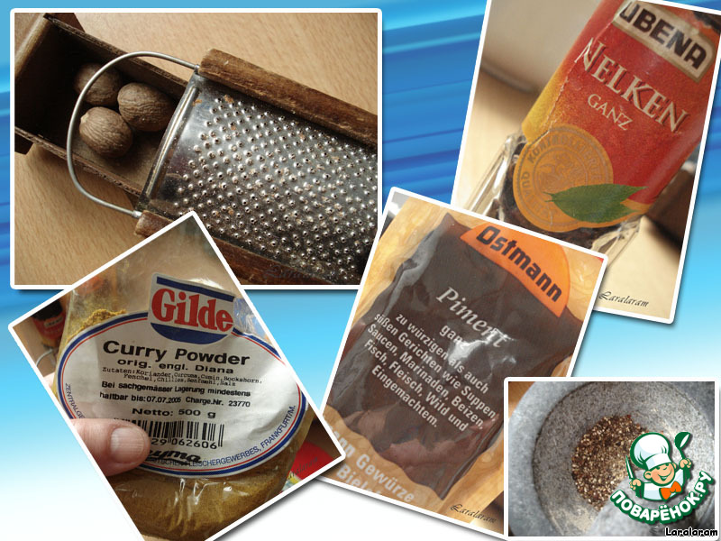 # Кроме того приправы в порошке: корианд, куркума, кайенн, чеснок, имбирь, шафран - по 1 ст. л. (хотя я не верю, что шафран добавляли 1 ст. л. - бред!)