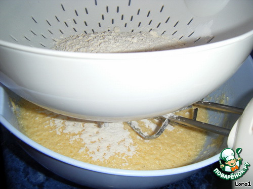 Добавить просеянную муку с разрыхлителем.