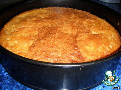 Горячий пирог достать из формы и залить сметанным кремом, поставить в выключенную духовку на несколько минут. Вытащить, опять полить кремом, разровнять лопаткой и опять в духовку на пару минут. Вытащить и покрыть кремом 3-й раз.