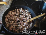 К грибам с луком добавляем мелко нарезанное филе индейки. И обжариваем все еще 10 минут.