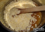 Как только сахар карамелизировался всыпаем орехи и перемешиваем.