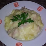 Не бросайте в меня НИКАКИЕ предметы, пожалуйста. Банальный, простой, домашний рецепт, служащий для утилизации недоеденного мяса. Мясо может быть любое. Но, главное, чтобы оно было уже готовое - вареное, тушеное, жареное, запеченное. Картофель получается очень и очень вкусный. А приготовить его сможет и ребенок! Девочки, я не нашла такого рецепта на сайте, чему очень удивилась - очень он уж простой. Рецепт взят еще из старой, советских времен, книги. Если что, удаляйте! Мы - люди простые... не гордые! ))