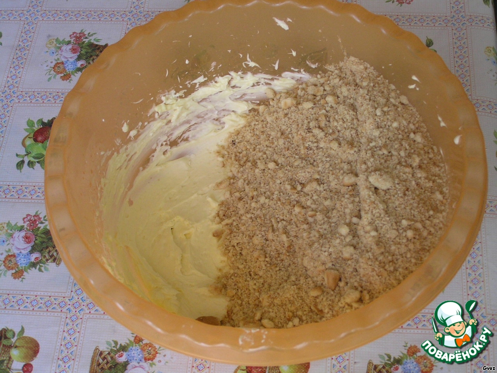 Взбить крем (масло + сгущёнка, я добавила ещё ванилин).
