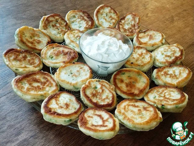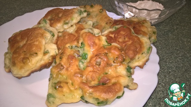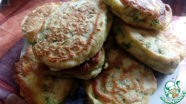 Рецепт «Оладьи на кефире с зеленым луком»:
