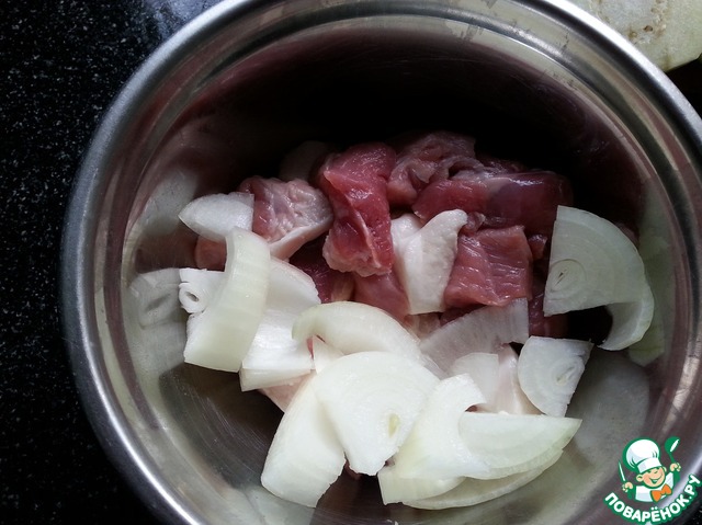 • Мясо с луком и чесноком пропустить через мясорубку. Фарш посолить и поперчить.