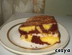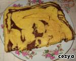 Смазываем форму маслом (я брала прямоугольную с высокими бортиками). Выливаем тесто в форму попеременно - то белую, то шоколадную массу, чтобы получилось "тесто-зебра".