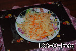 В это время трем морковь, режем мелко чеснок, лук - кольцами, добавляем соль, перец.