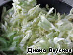 когда лук обжарится, добавить нашинкованную молодую капустку и не тушим, а именно недолго поджариваем (чтоб хрустела)
