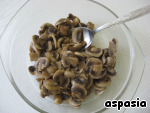Грибы шампиньоны нарезать тонко и обжарить на растительном масле
