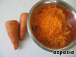 Морковь нашинковать и бланшировать на растительном масле 10 мин.