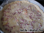 Раскатываем, кладем в форму (у меня около 30 см). Делаем наколы вилкой и кладем на 10 мин. в морозилку (необязательно).