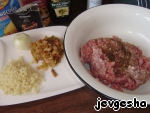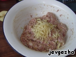 В фарш положить все ингредиенты. Смешать. Последним натереть яблоко. Массу отбить.
