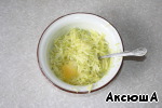 В кабачки разбиваем яйцо, перемешиваем (лучше всего вилкой) до образования пенки.