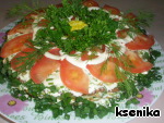 Украшаем помидоркой и зеленью, в серединке - желтком.